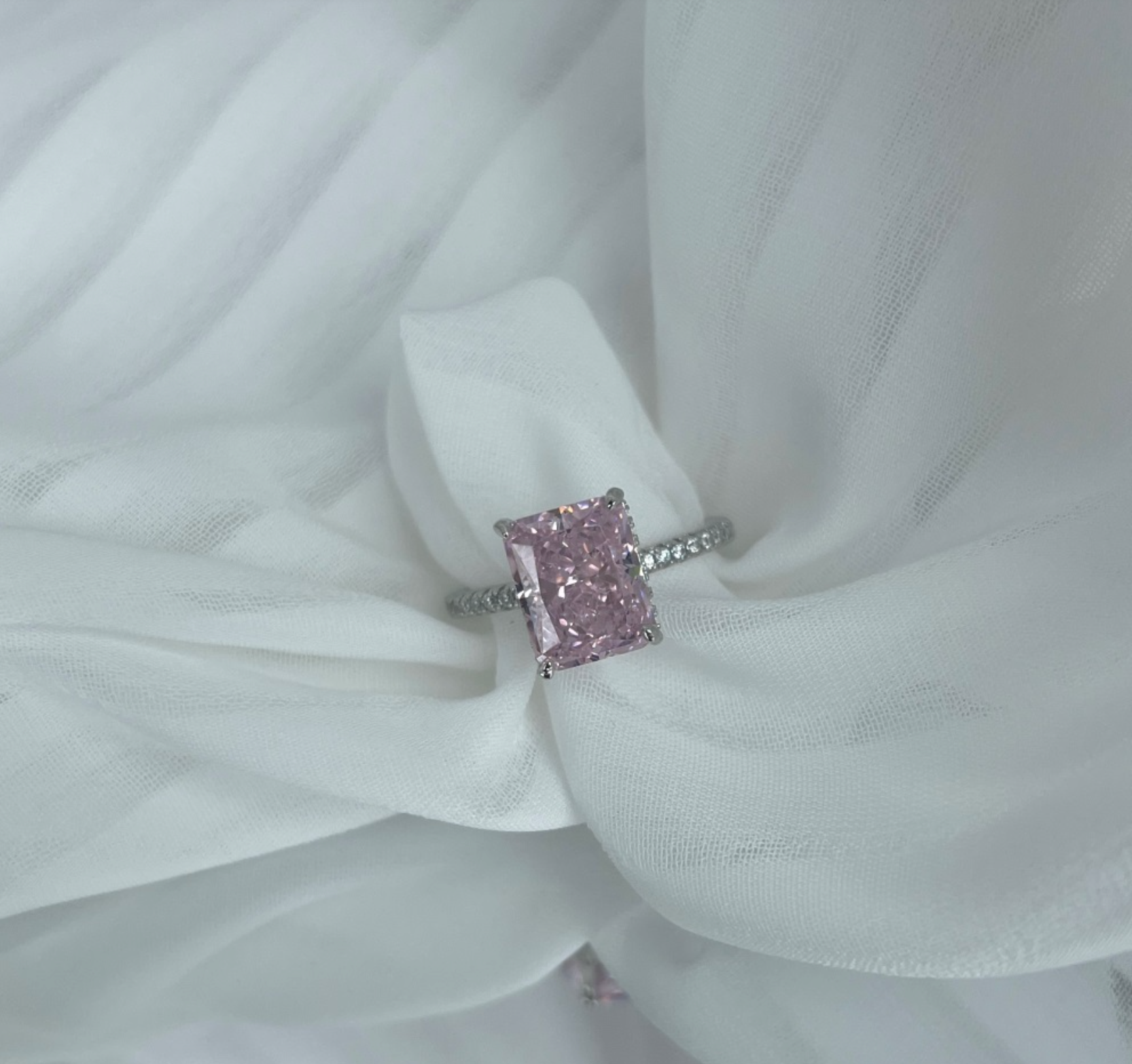 Pink Radiant Cut CZ Statement Ring in Sterling Silver