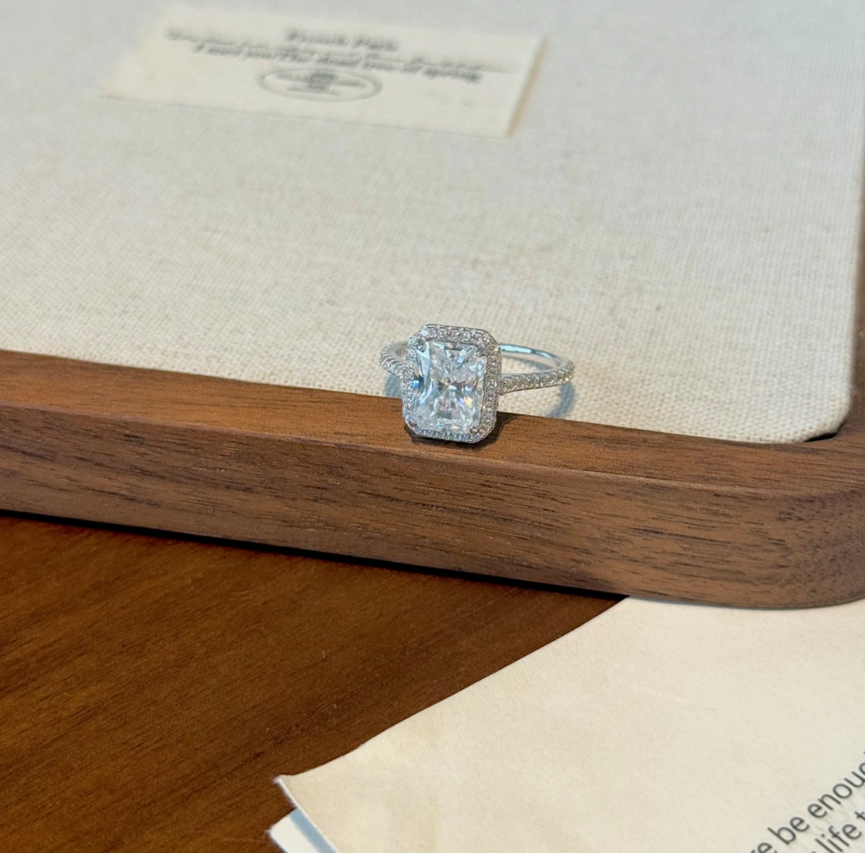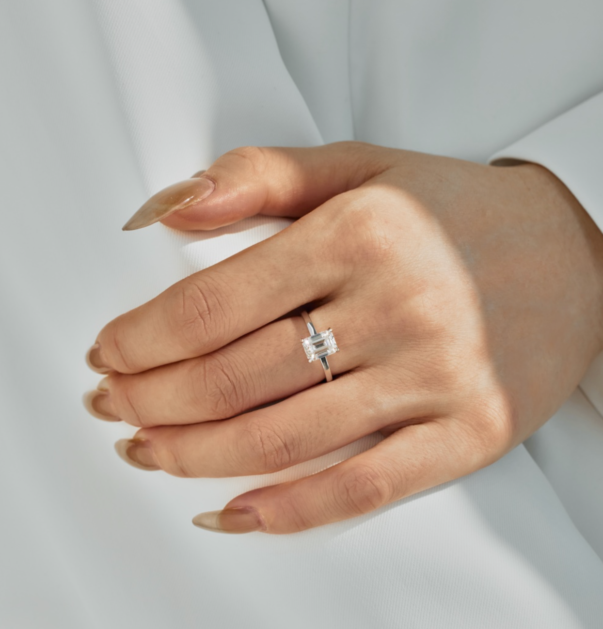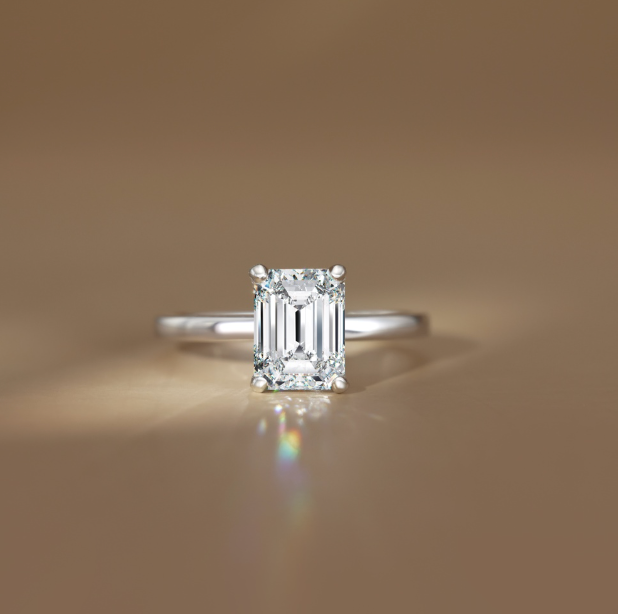 Emerald Cut Solitaire Moissanite Engagement Ring
