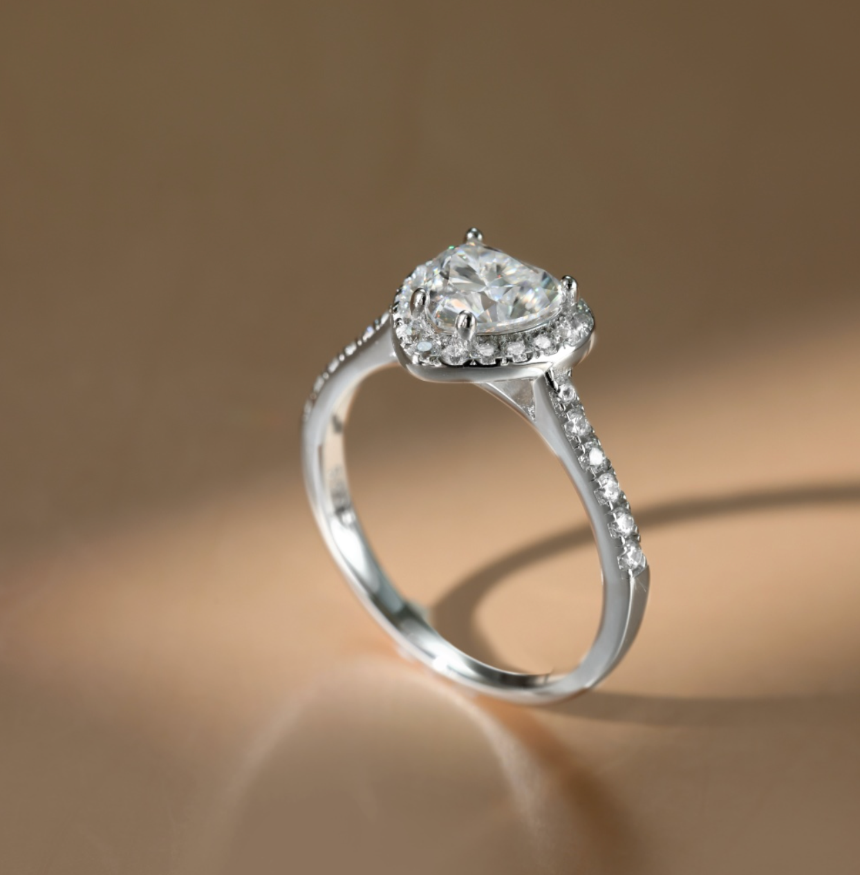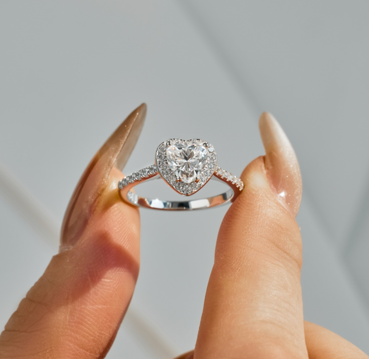Romantic Pink Heart CZ Ring with Pavé Band – 1ct Look