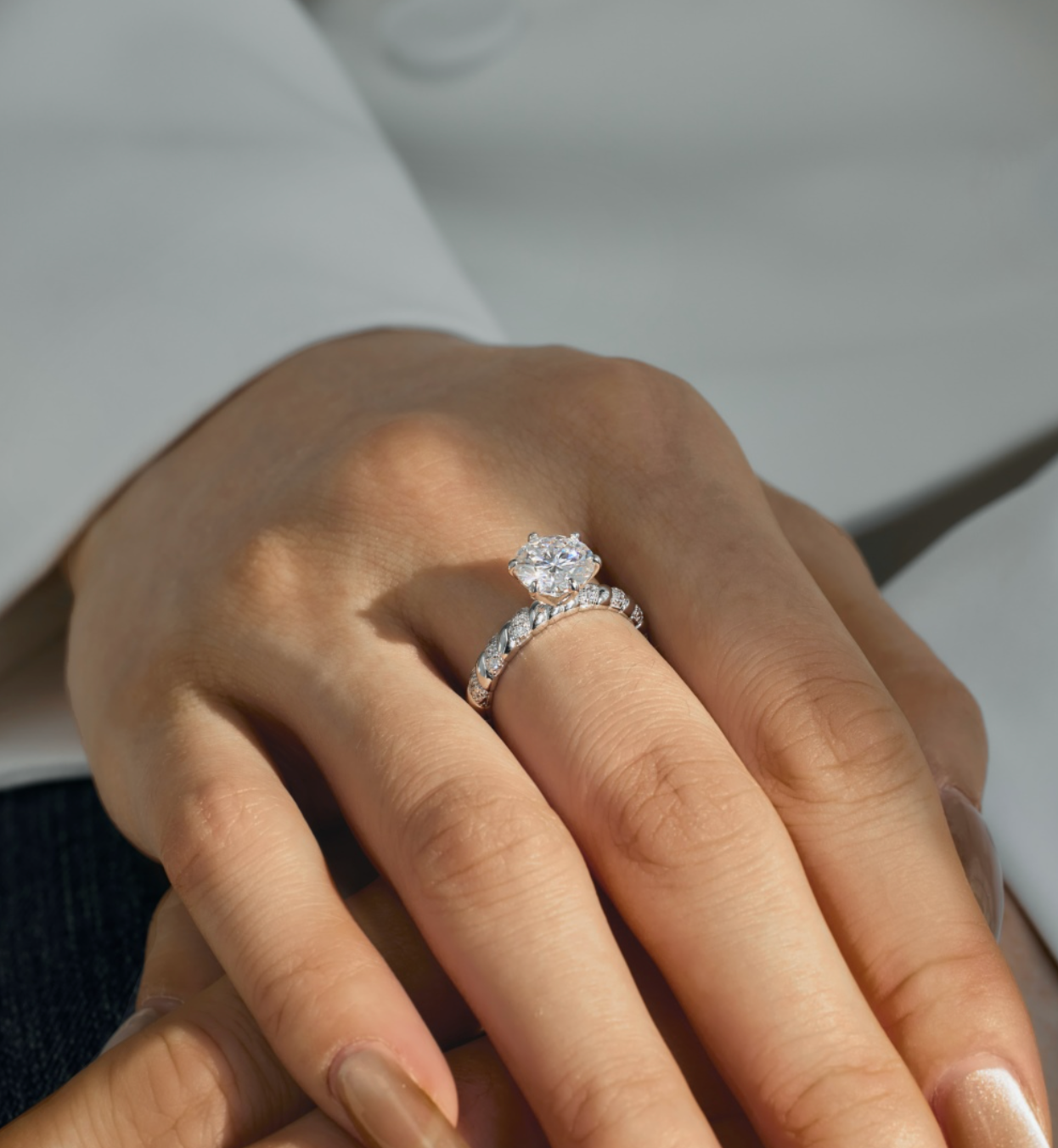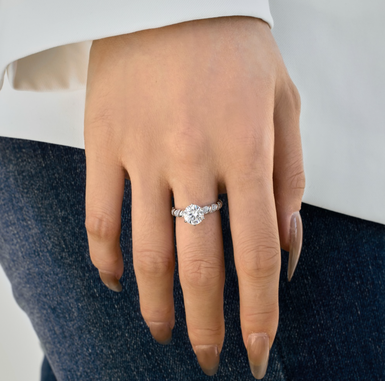 Round Cut Moissanite Engagement Ring with Multi-Row Pavé Band